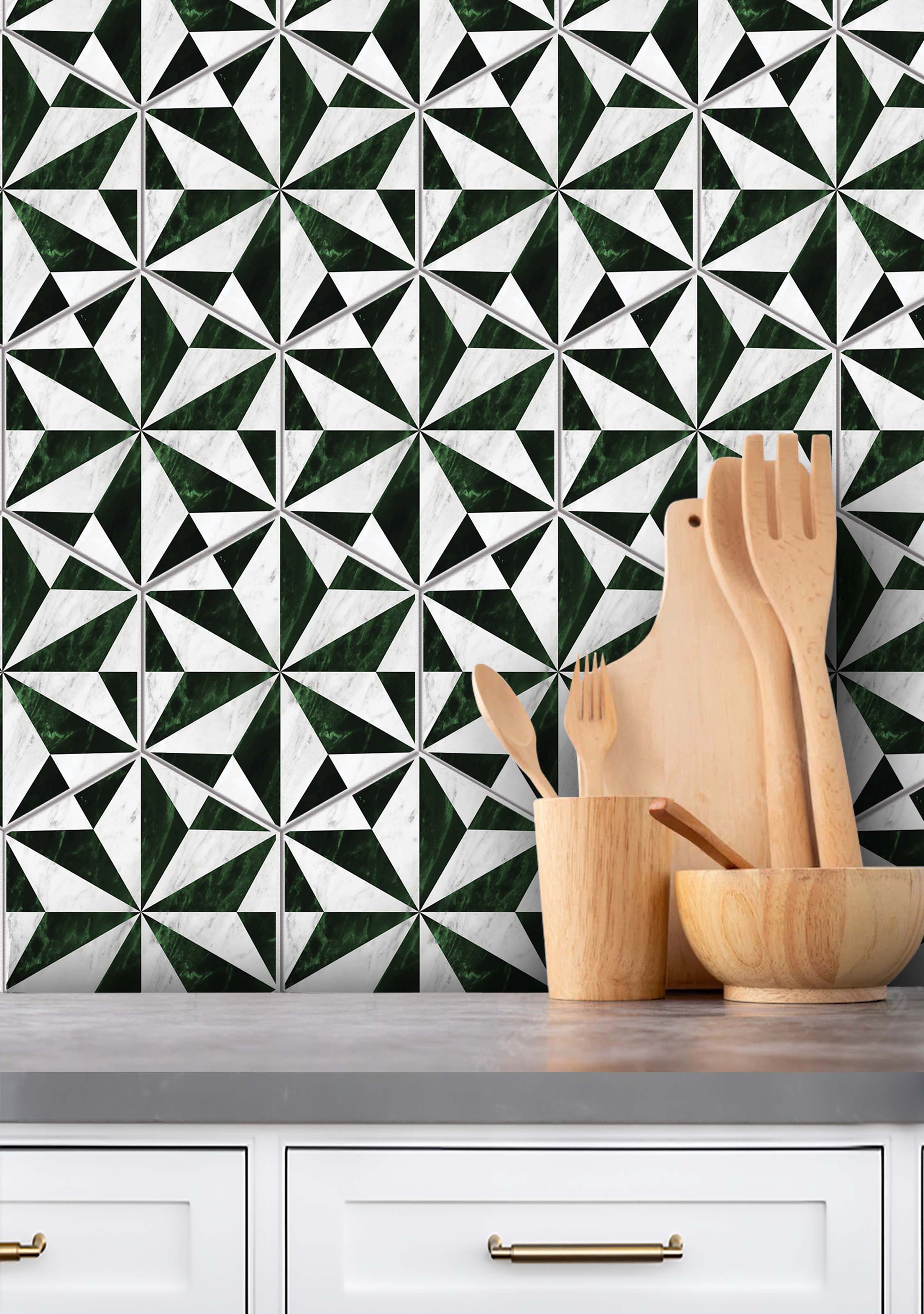 Black and White Geometric Tile Stickers | Peel and Stick Kitchen Wall Floor Bathroom Tile Decals | Removable| Free Shipping