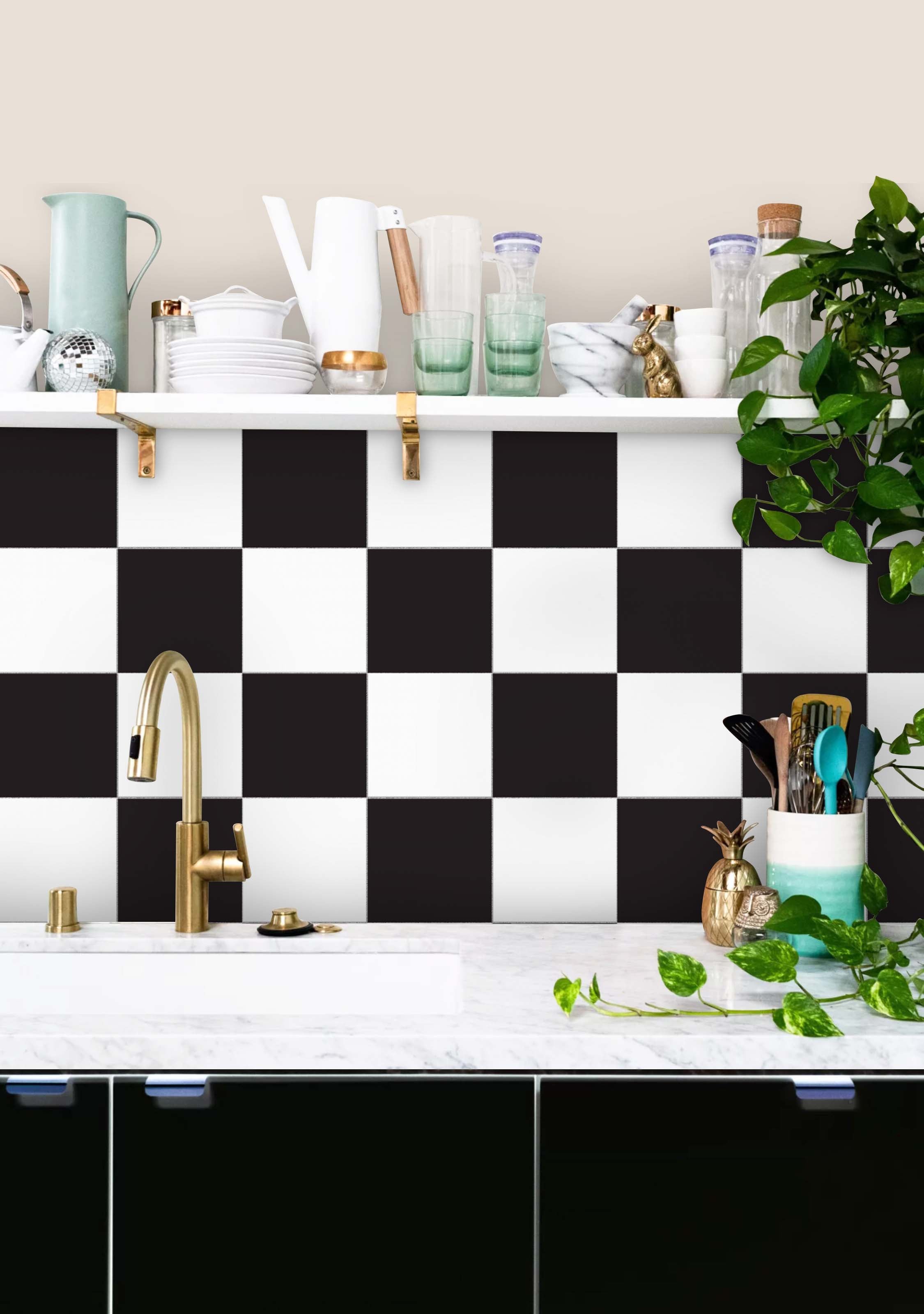 Black and White Checkered Kitchen Floor Tile Decals | Peel and Stick Tile Stickers for Kitchen Bathroom, Wall Tile Stickers