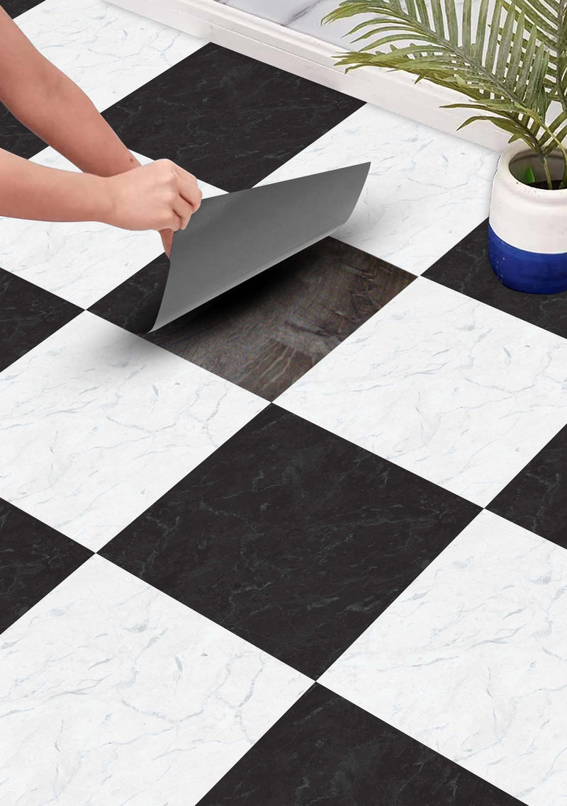 Black and White Checkered Marble Texture Tile Stickers | Antiskid Floor Tile Stickers | Peel and Stick Tile Vinyl | Removable