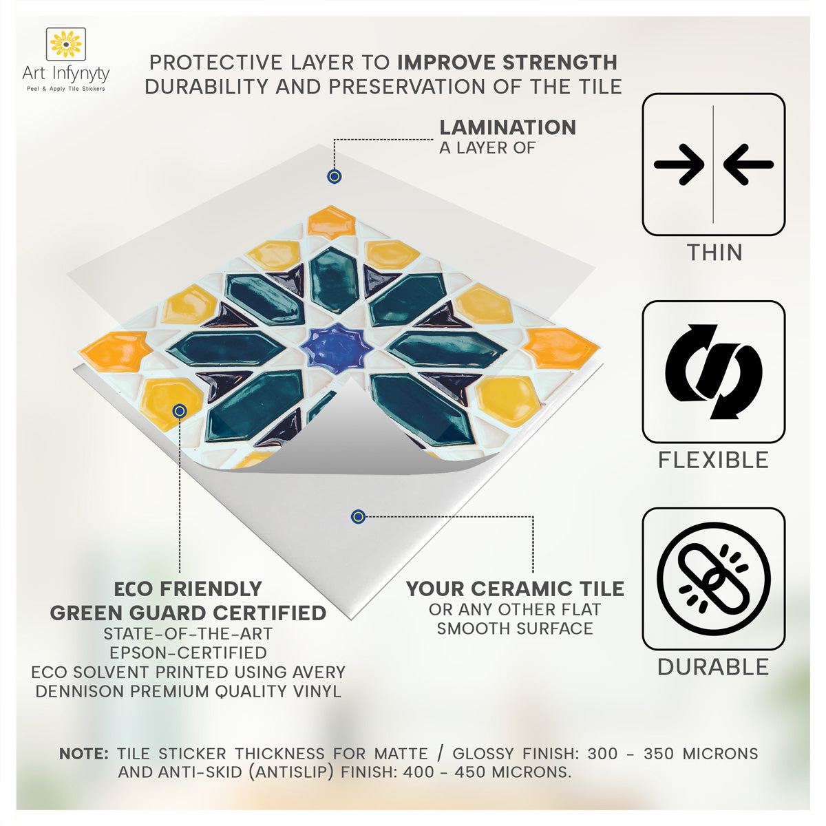 Art Infynyty Stickers are the fastest, most convenient, durable, and hassle-free wall decoration product. The most preferred wall finish the world over. 70% of homes and offices worldwide are dressed with wall coverings. Painting a space can block it for weeks.