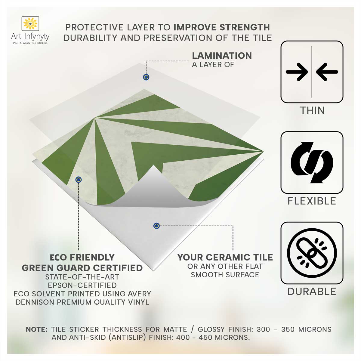 Art Infynyty Stickers are the fastest, most convenient, durable, and hassle-free wall decoration product. The most preferred wall finish the world over. 70% of homes and offices worldwide are dressed with wall coverings. Painting a space can block it for weeks.