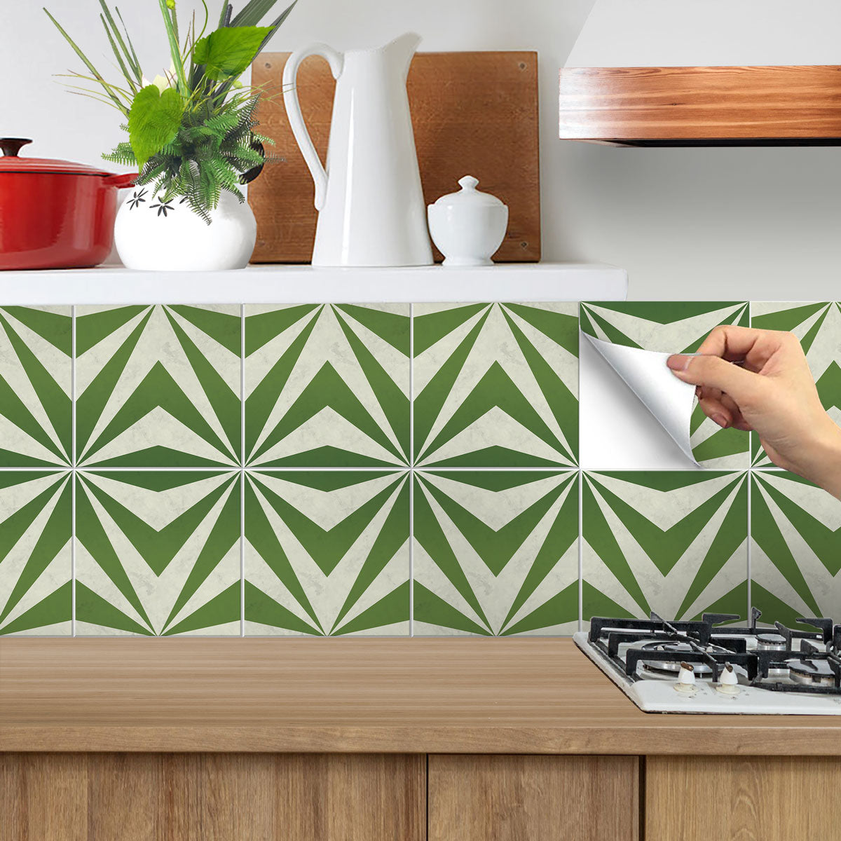 Oblique Moss Green Tile Stickers | Antiskid Floor Tile Vinyl | Peel and Stick Kitchen Bathroom Wall Tile Stickers | Removable