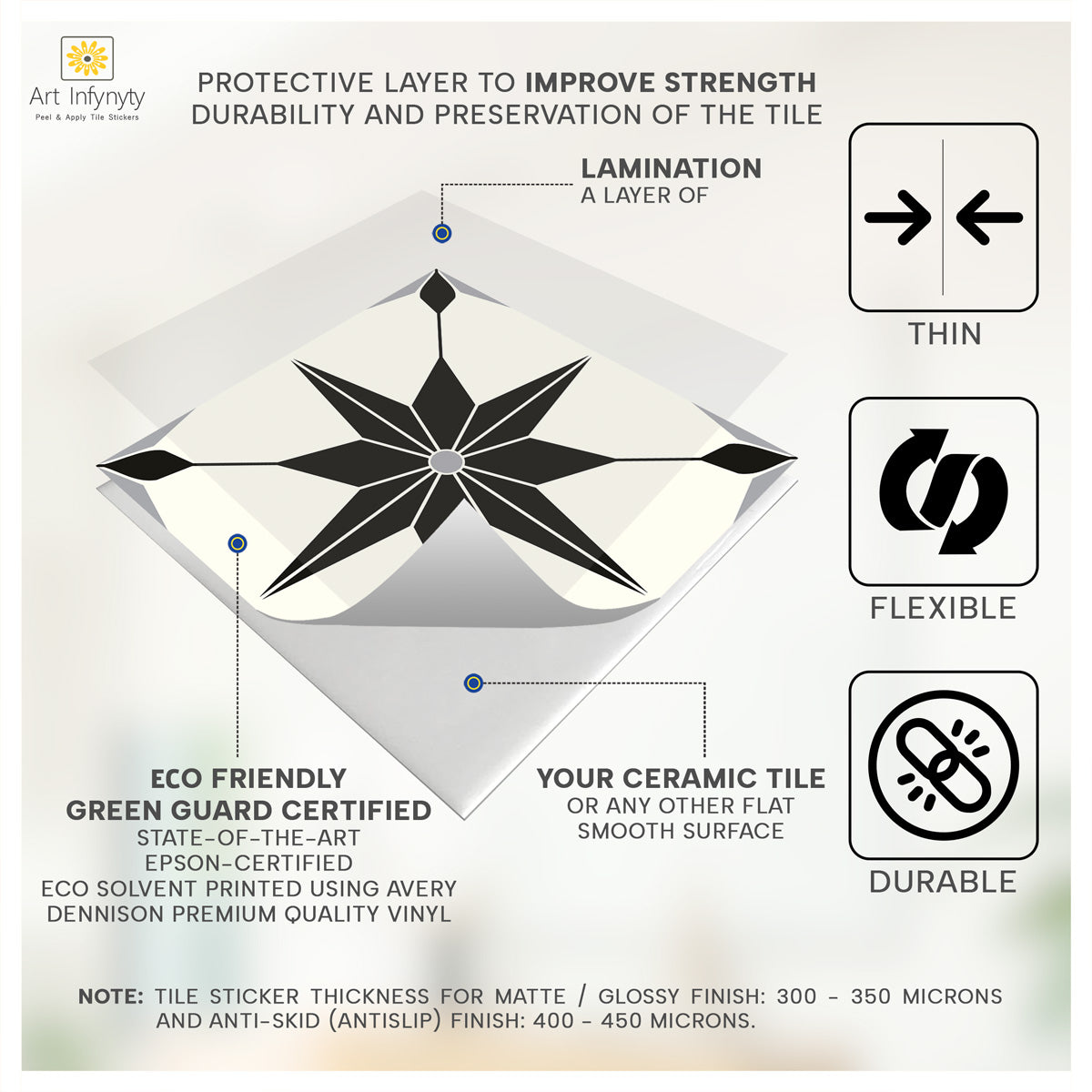 Art Infynyty Stickers are the fastest, most convenient, durable, and hassle-free wall decoration product. The most preferred wall finish the world over. 70% of homes and offices worldwide are dressed with wall coverings. Painting a space can block it for weeks.