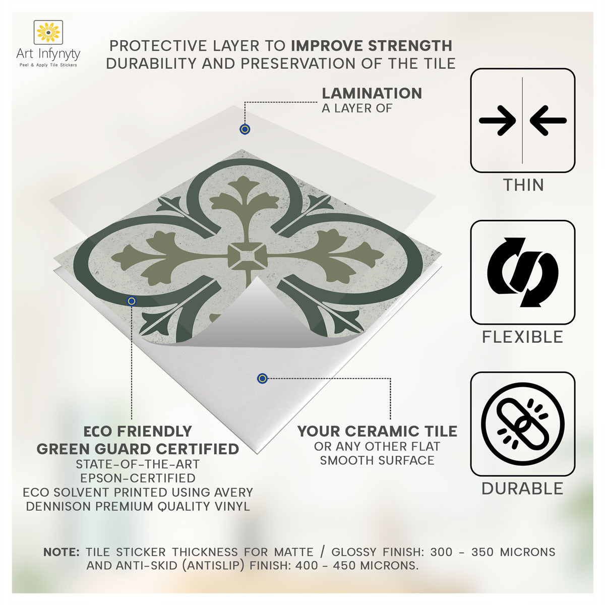 Art Infynyty Stickers are the fastest, most convenient, durable, and hassle-free wall decoration product. The most preferred wall finish the world over. 70% of homes and offices worldwide are dressed with wall coverings. Painting a space can block it for weeks.