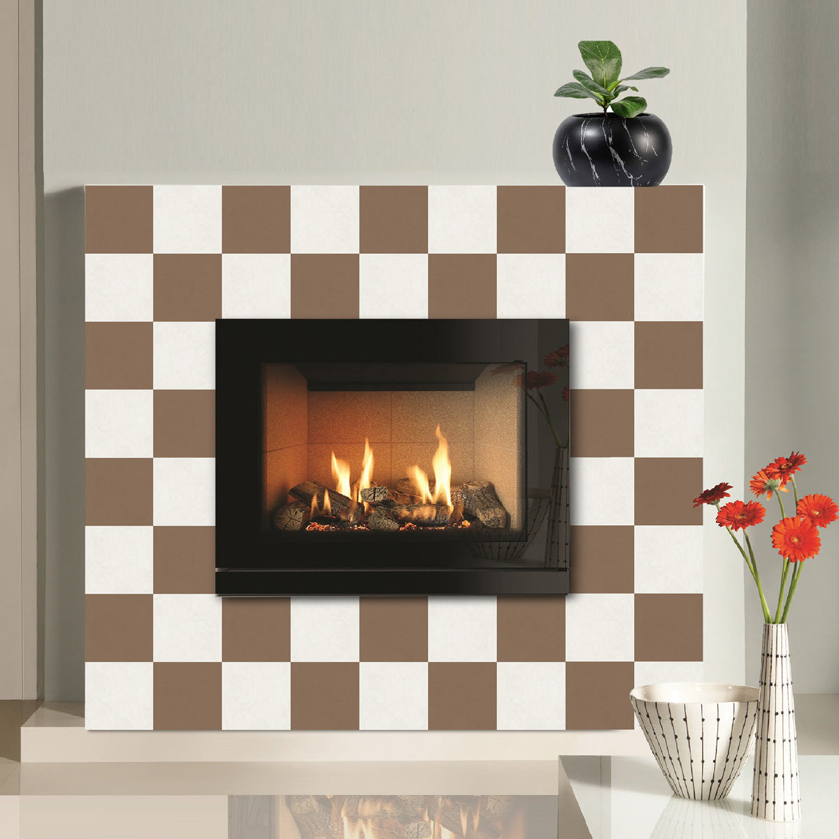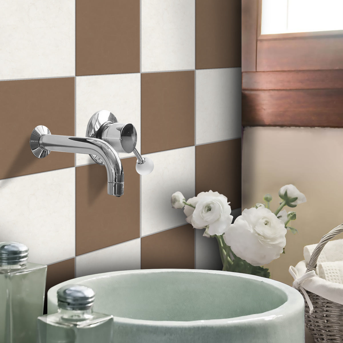 Café Mocha Checker Floor Tile Stickers | Peel and Stick Tile Decals for Kitchen, Bathroom and Wall | Waster Proof | Free Shipping