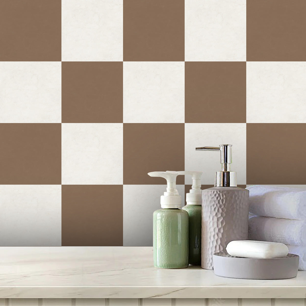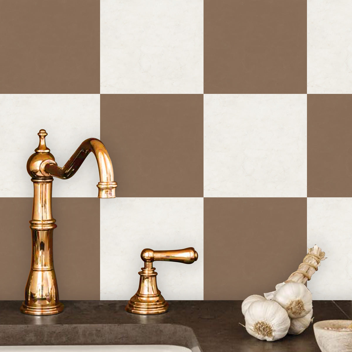 Café Mocha Checker Floor Tile Stickers | Peel and Stick Tile Decals for Kitchen, Bathroom and Wall | Waster Proof | Free Shipping - Sample 4" x 4" - 6 Pcs / Matte Finish