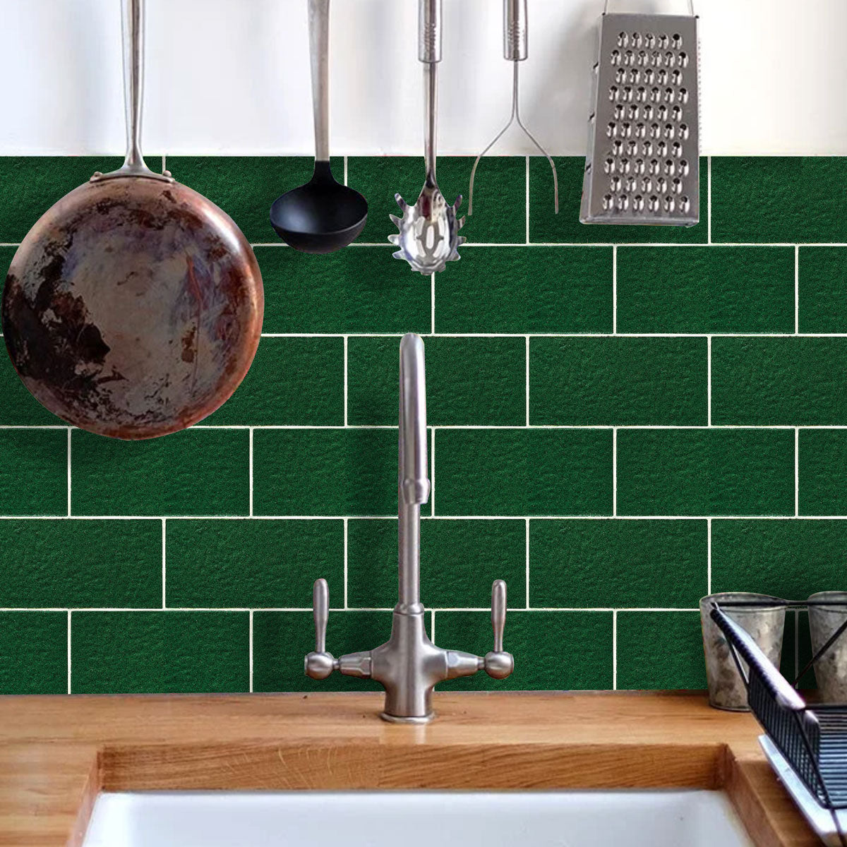 Green Gross Peel and Stick Tile Stickers | Backsplash Tile Vinyl Decals for Bathroom, Kitchen and Wall | Antiskid Floor Tile Vinyl
