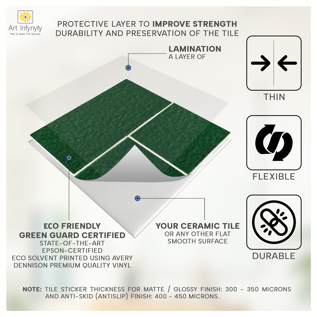 Green Gross Peel and Stick Tile Stickers | Backsplash Tile Vinyl Decals for Bathroom, Kitchen and Wall | Antiskid Floor Tile Vinyl - Sample 4" x 4" - 6 Pcs / Matte Finish