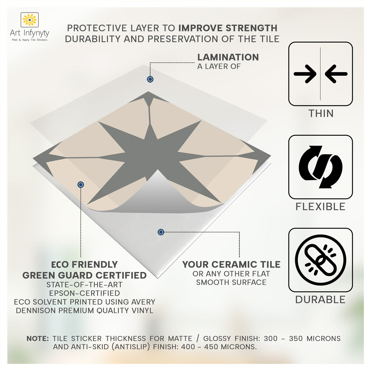 Kitchen Backsplash Tile Stickers | Peel and Stick Kitchen, Bathroom Wall Tile Decals | Antiskid Floor Tile Stickers | Removable - Sample 4" x 4" - 6 Pcs / Matte Finish