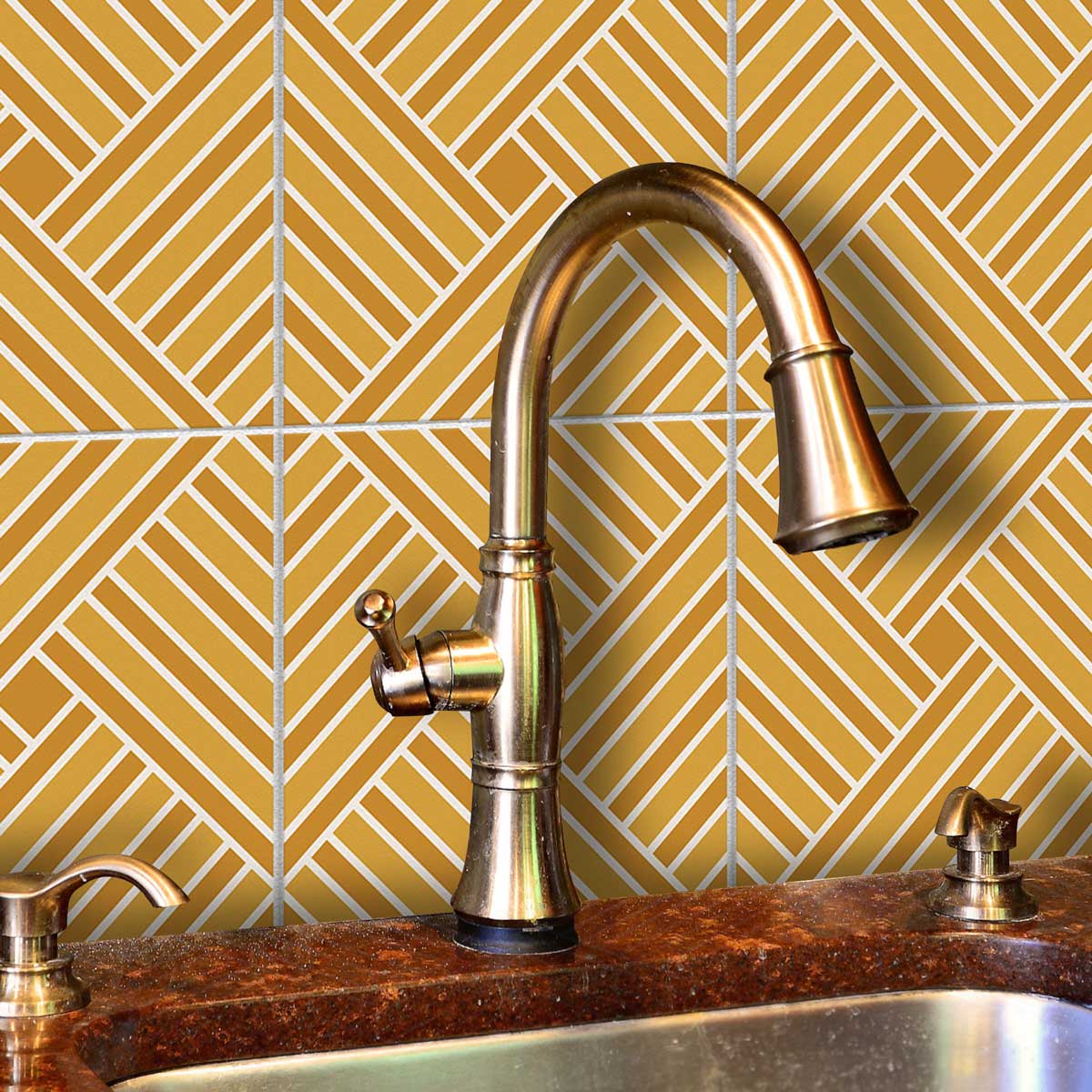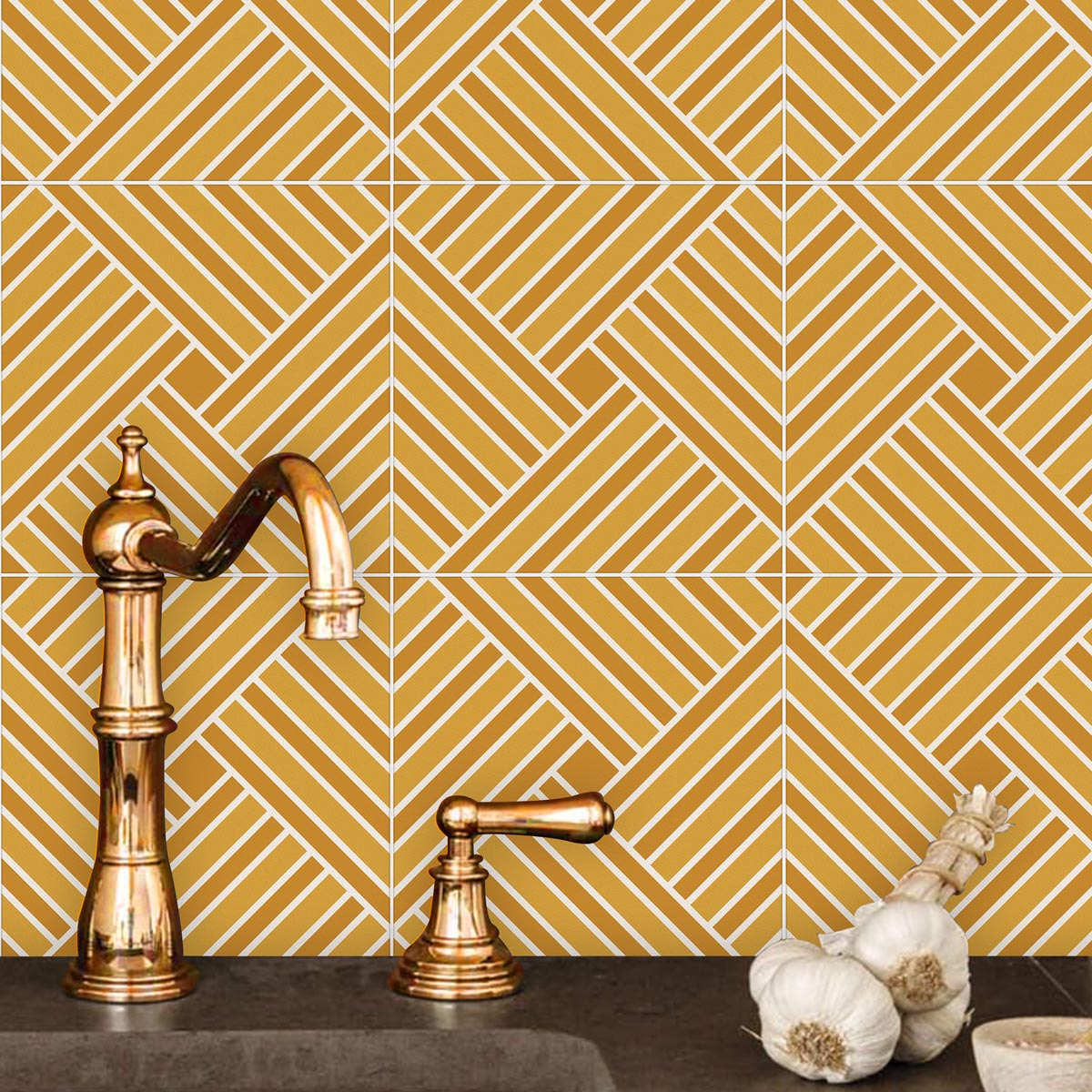 Yellow Seamless Floor Tile Stickers | Peel and Stick Kitchen, Backsplash, Wall and Tile Decals | Water Proof