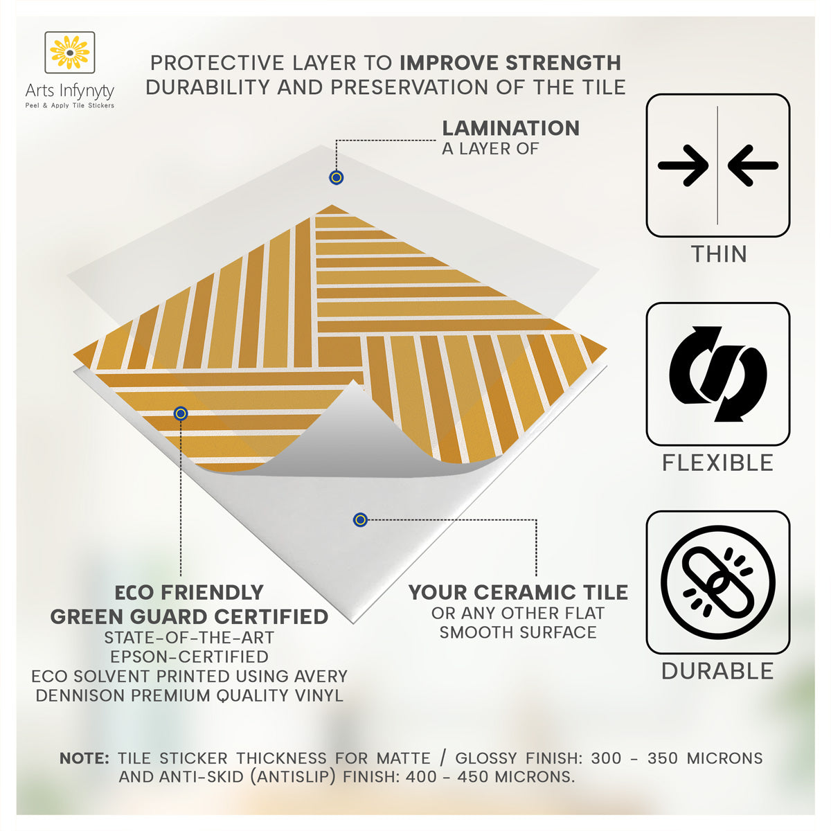 Yellow Seamless Floor Tile Stickers | Peel and Stick Kitchen, Backsplash, Wall and Tile Decals | Water Proof - Sample 4" x 4" - 6 Pcs / Matte Finish