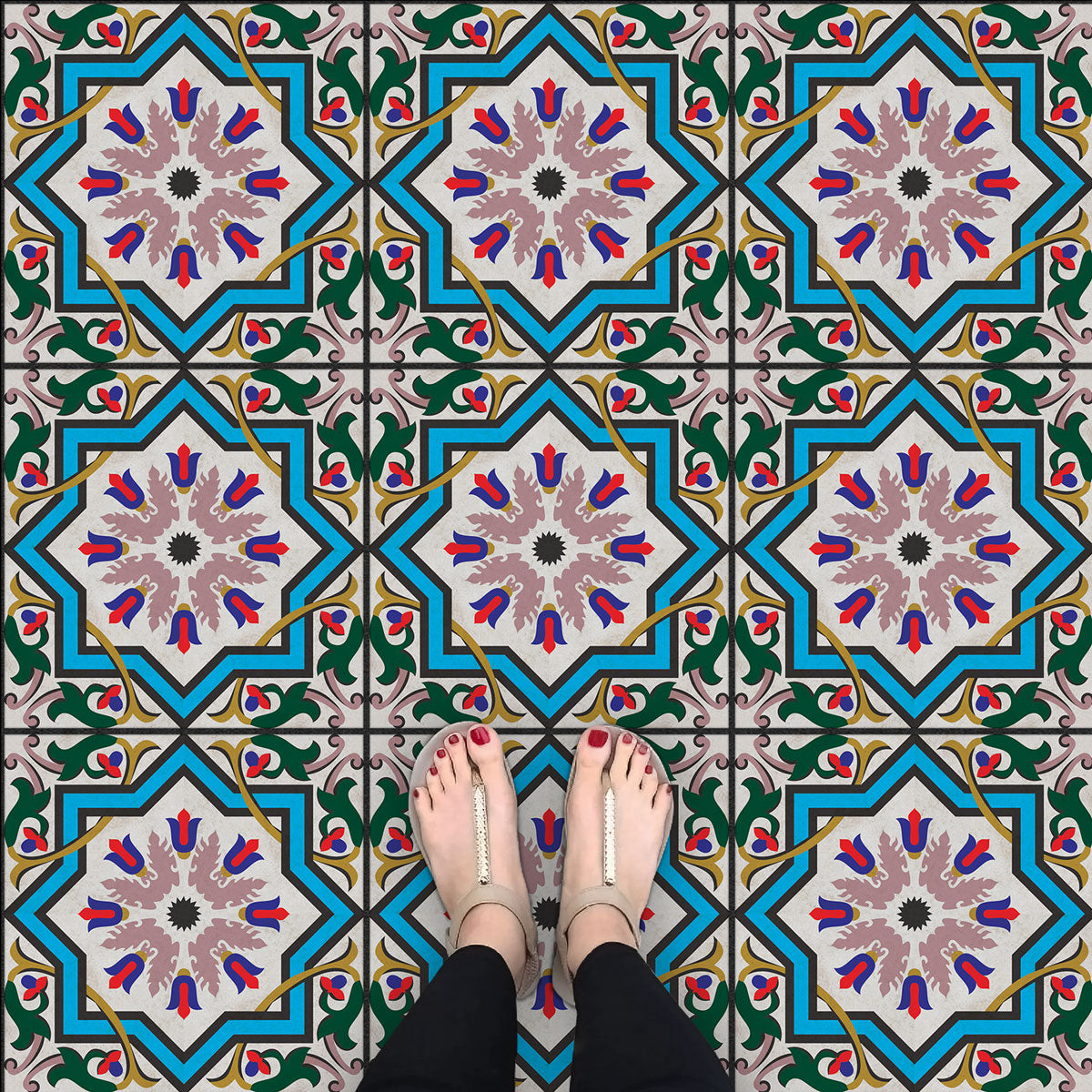 Classic Celestial Tulip Tile Stickers | Hand Crafted Decal | Kitchen Bathroom Wall Floor Tile Stickers | Removable | Free Shipping - Sample 4" x 4" - 6 Pcs / Matte Finish