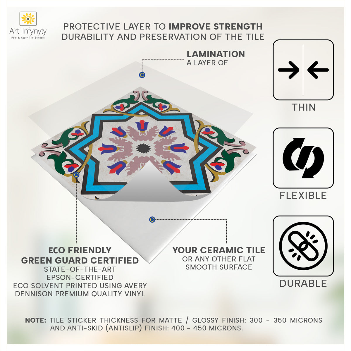 Art Infynyty Stickers are the fastest, most convenient, durable, and hassle-free wall decoration product. The most preferred wall finish the world over. 70% of homes and offices worldwide are dressed with wall coverings. Painting a space can block it for weeks.