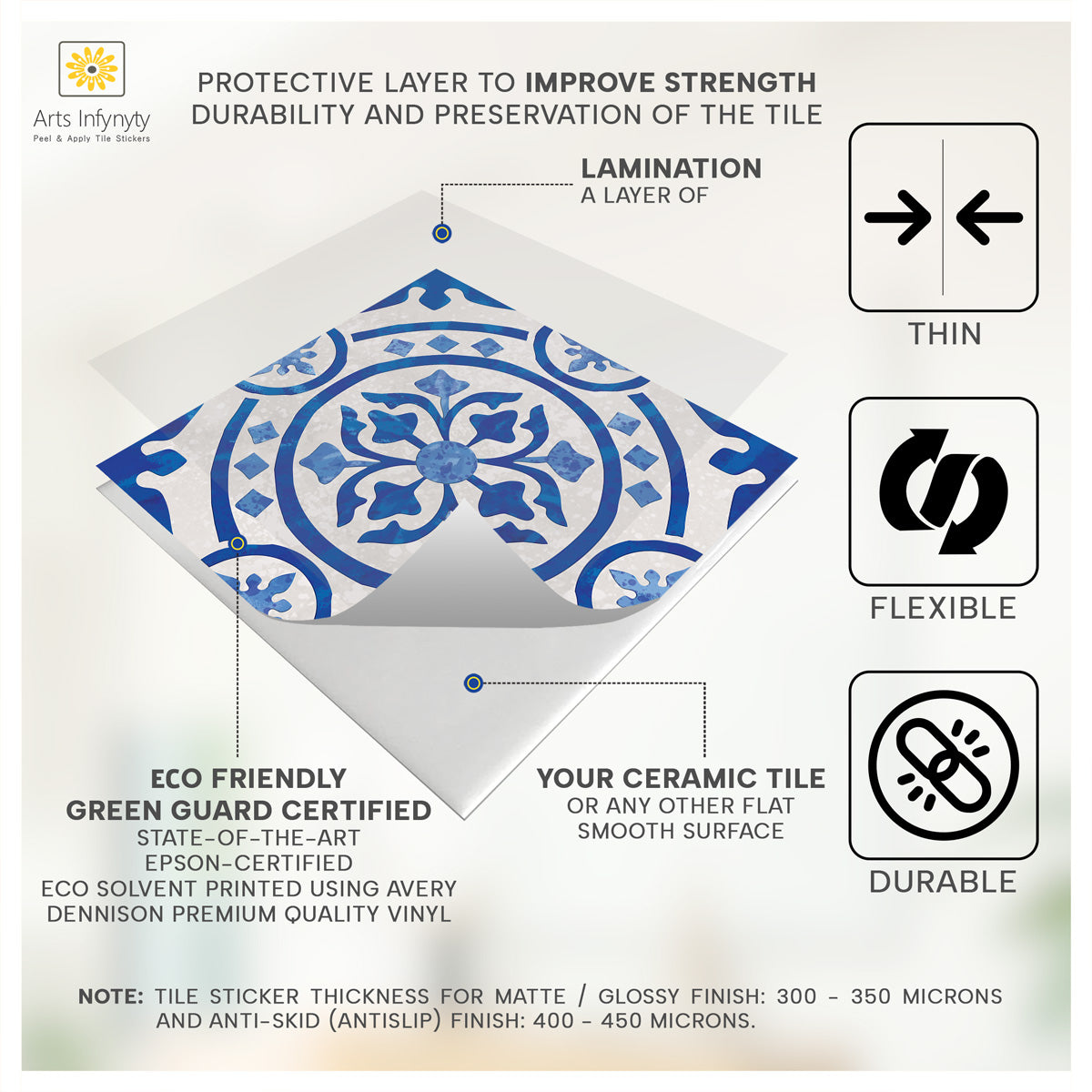 Pearl Sapphire Blue Peel and Stick Tile Stickers | Kitchen, Wall Backsplash Tile Decals | Antiskid Floor Tile Stickers | Removable